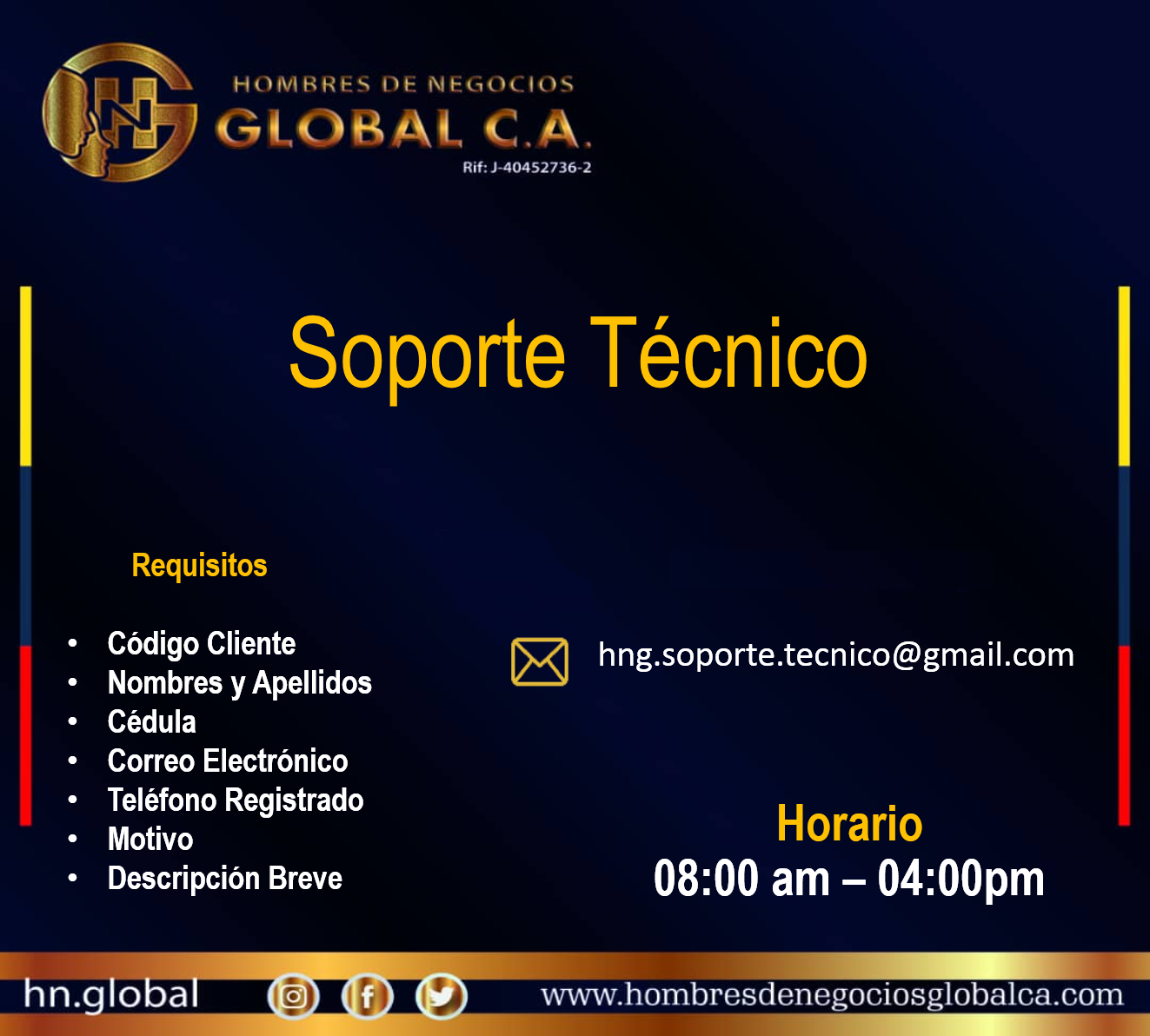 Hombres de Negocios Global C.A, pone a su disposición las siguientes cuentas de banco para mayor accesibilidad y facilidad en sus pagos.